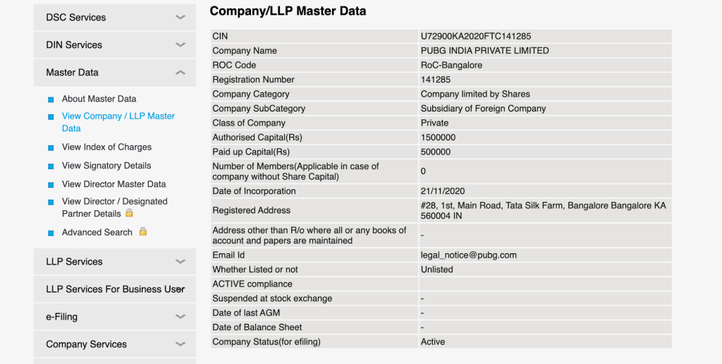 PUBG India Private Limited is now a legit company in India after the approval of the Ministry of Corporate Affairs. This means the PUBG India game is going to launch very soon. The company is already listed on the ministry’s website with a valid Corporate Identity Number (CIN) and registered office is in Bengaluru. The directors of PUBG India Private Limited are Kumar Krishnan Iyer and Hyunil Sohn. The company was incorporated on November 21, 2020 in Karnataka with a paid up capital of Rs 5 lakh and authorised capital of Rs15 lakh as subsidiary of foreign company. Iyer is also the director of eight other companies including Accuweather India Private Limited.PUBG Corporation, creator of Playerunknown’s Battlegrounds (PUBG) and subsidiary of South Korea’s Krafton Incwill be launching PUBG MOBILE INDIA soon. It will be a new game created specifically for the Indian market.